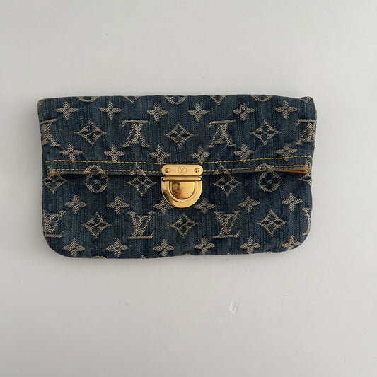 Vintage Louis Vuitton Monogram Denim Pochette Plat Clutch Blue