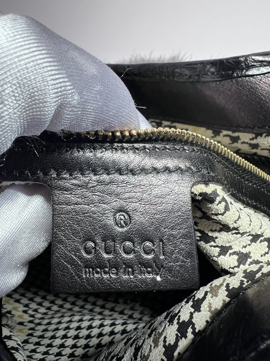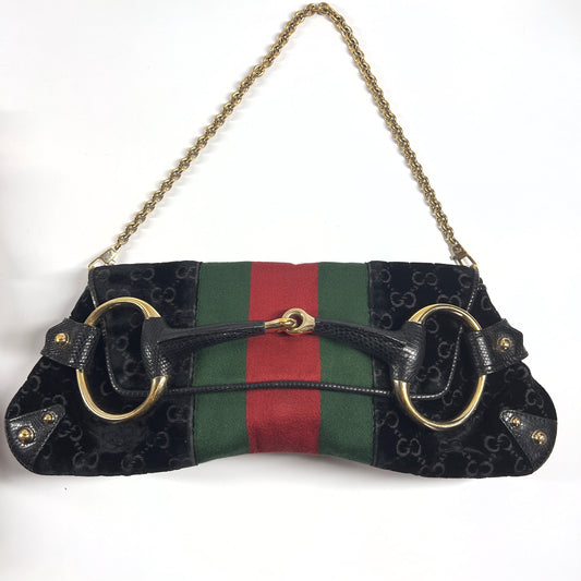 Vintage Gucci Black Velvet Lizard Horsebit Chain Big size