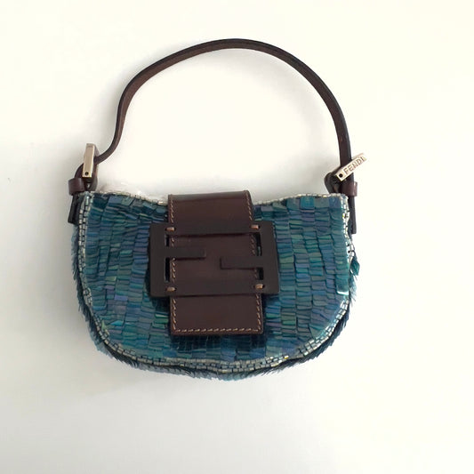 Vintage Fendi Pony Hair Beaded Fringes Baguette
