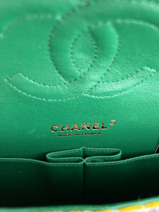 Chanel Multicolor Woven Stripes Double Flap Bag Medium