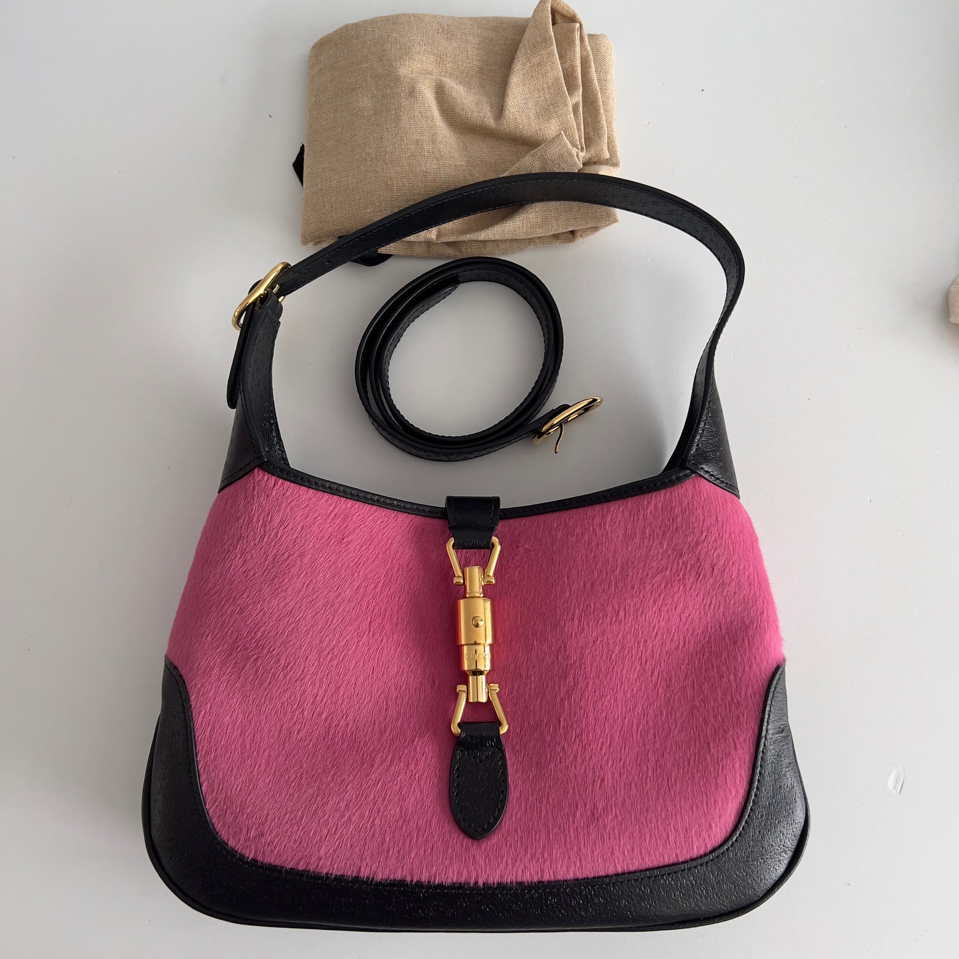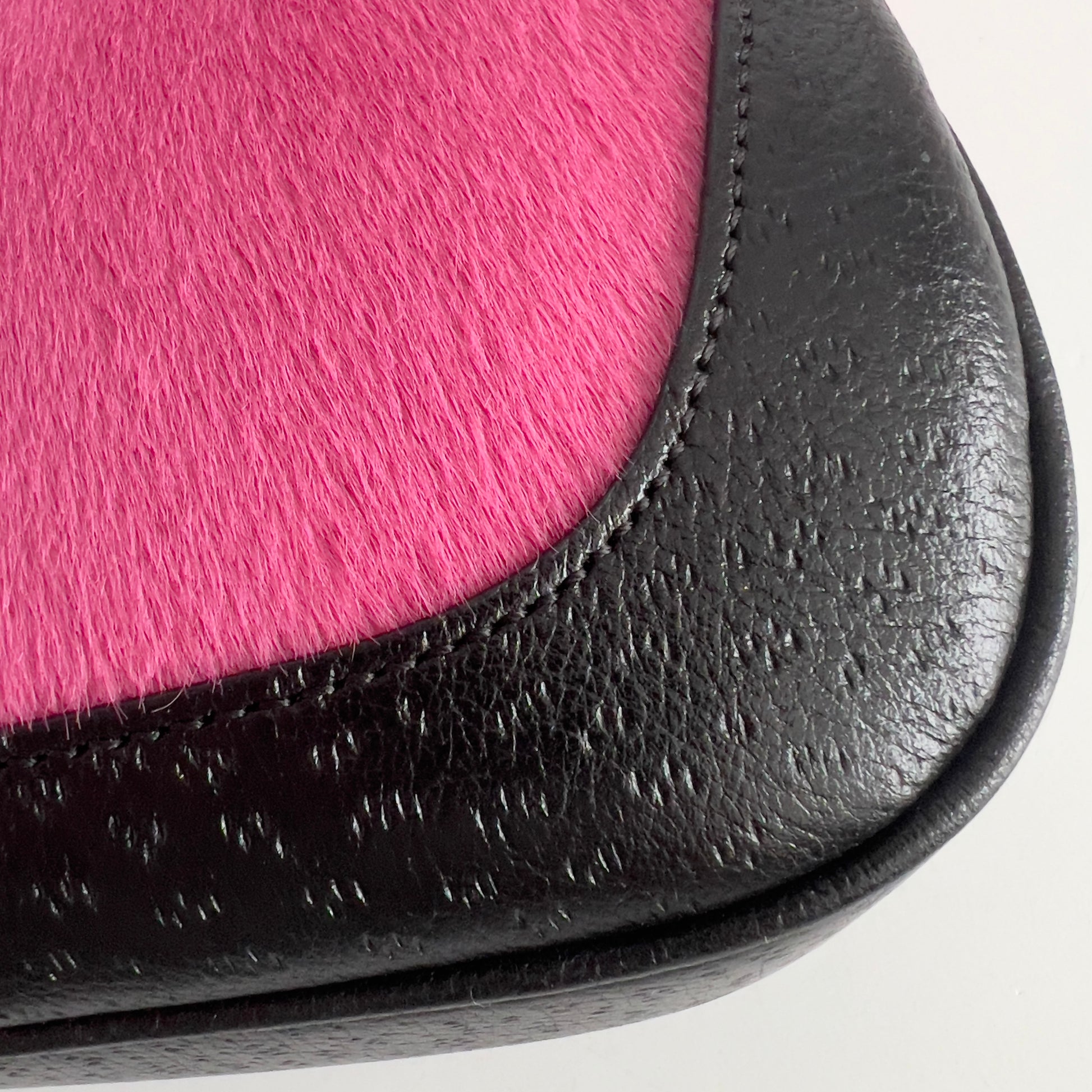 Gucci Calf Hair Dollar Calfskin Jackie 1961 Hobo Pink Black Small Size