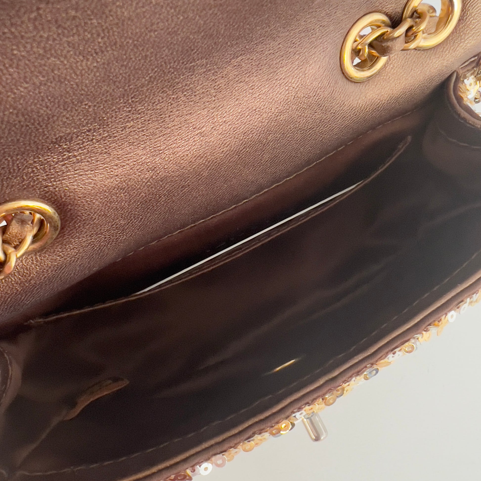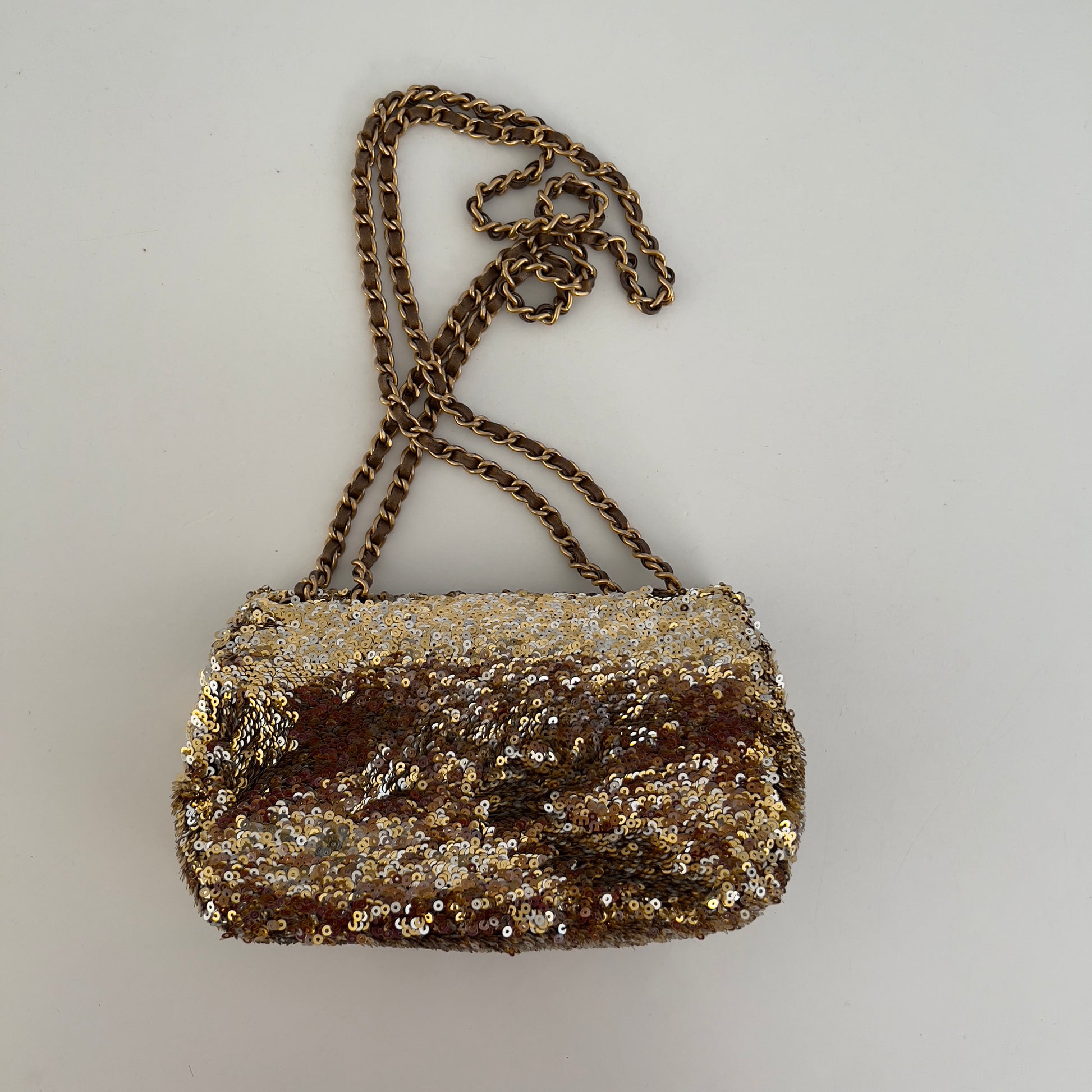 Chanel Mini Rectangle Gold& Silver Sequin Flap Bag