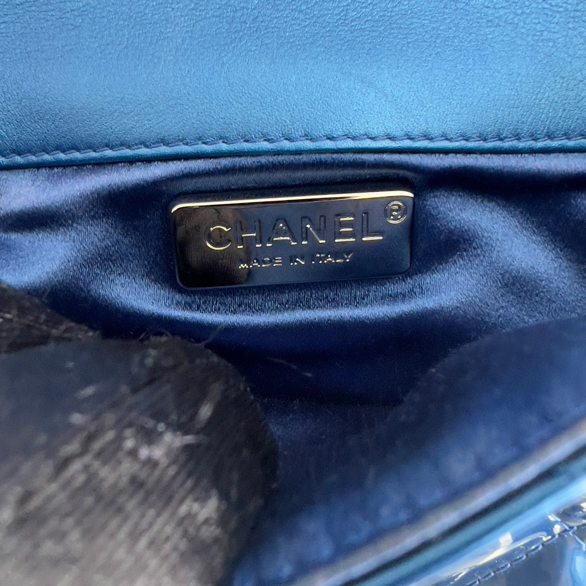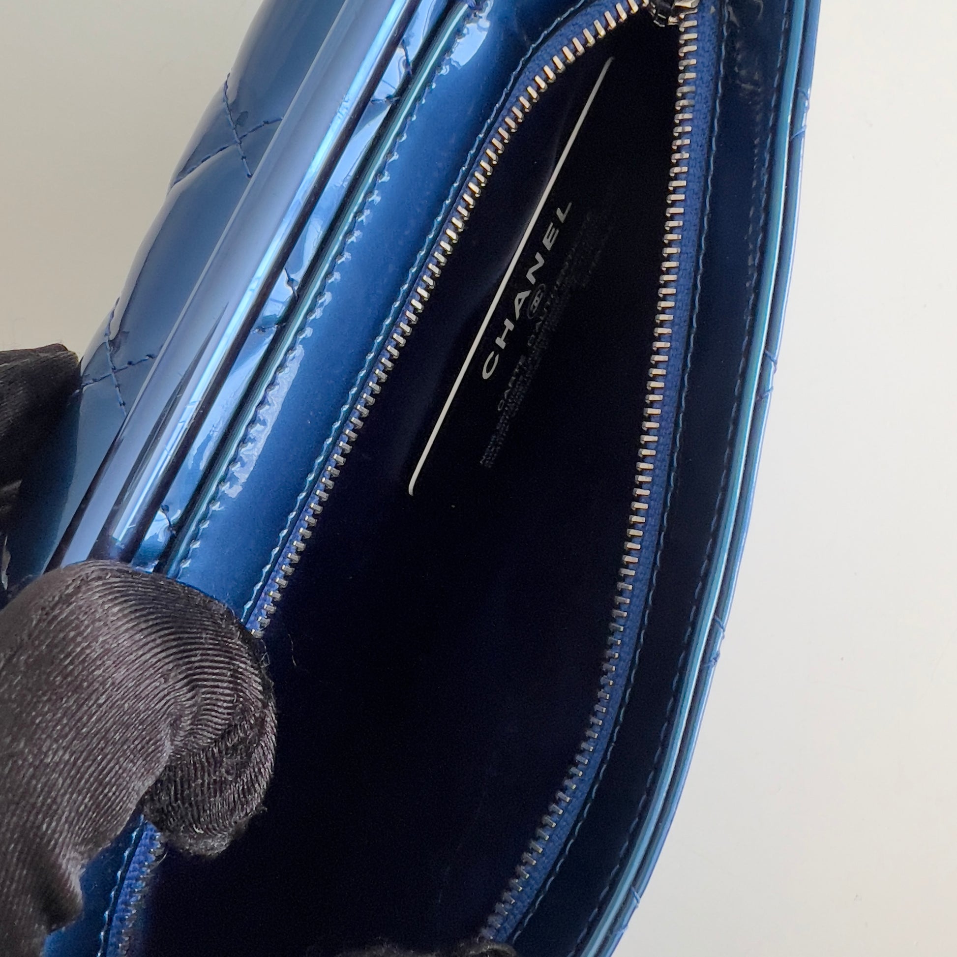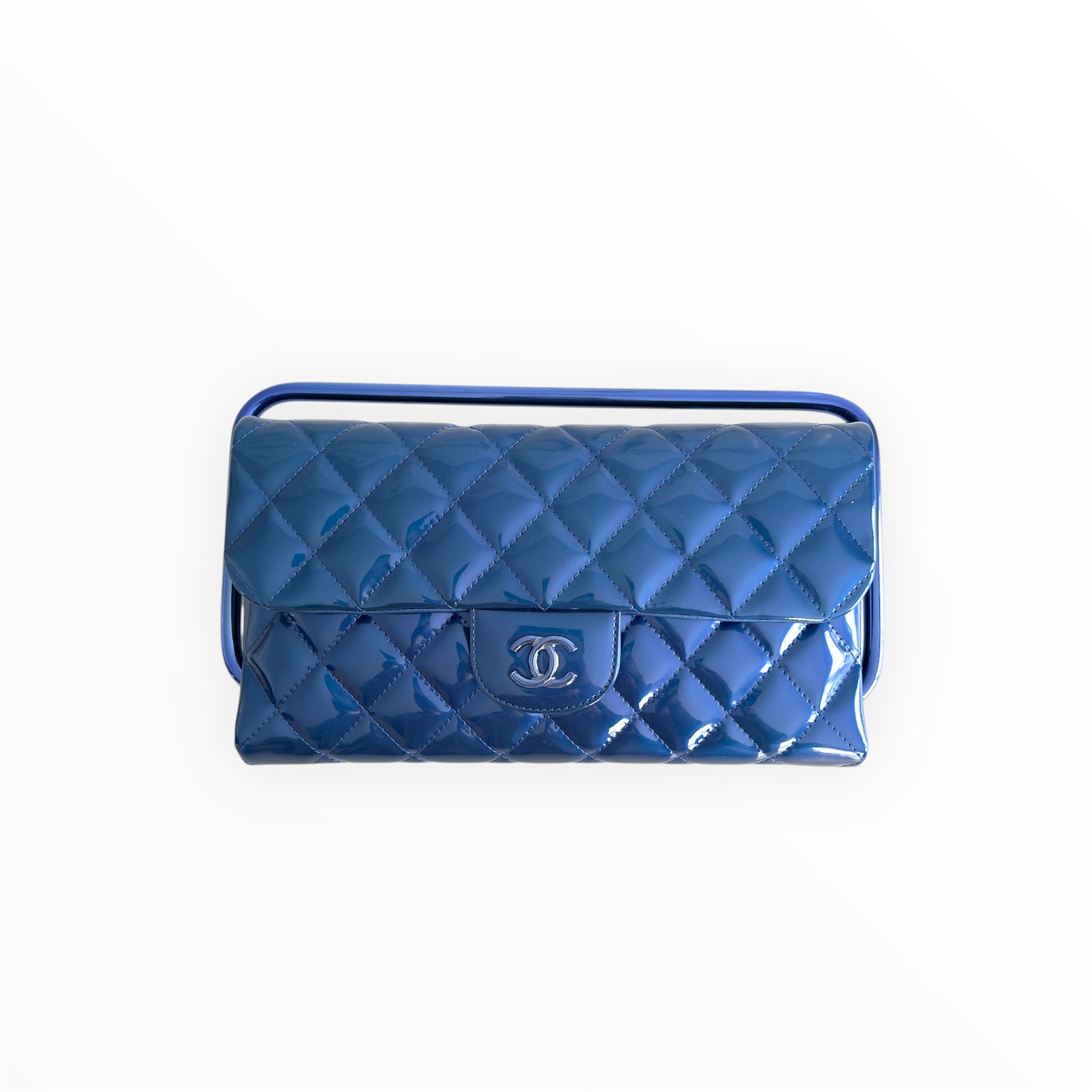 Chanel Runway Metallic Blue Patent Clutch Bag