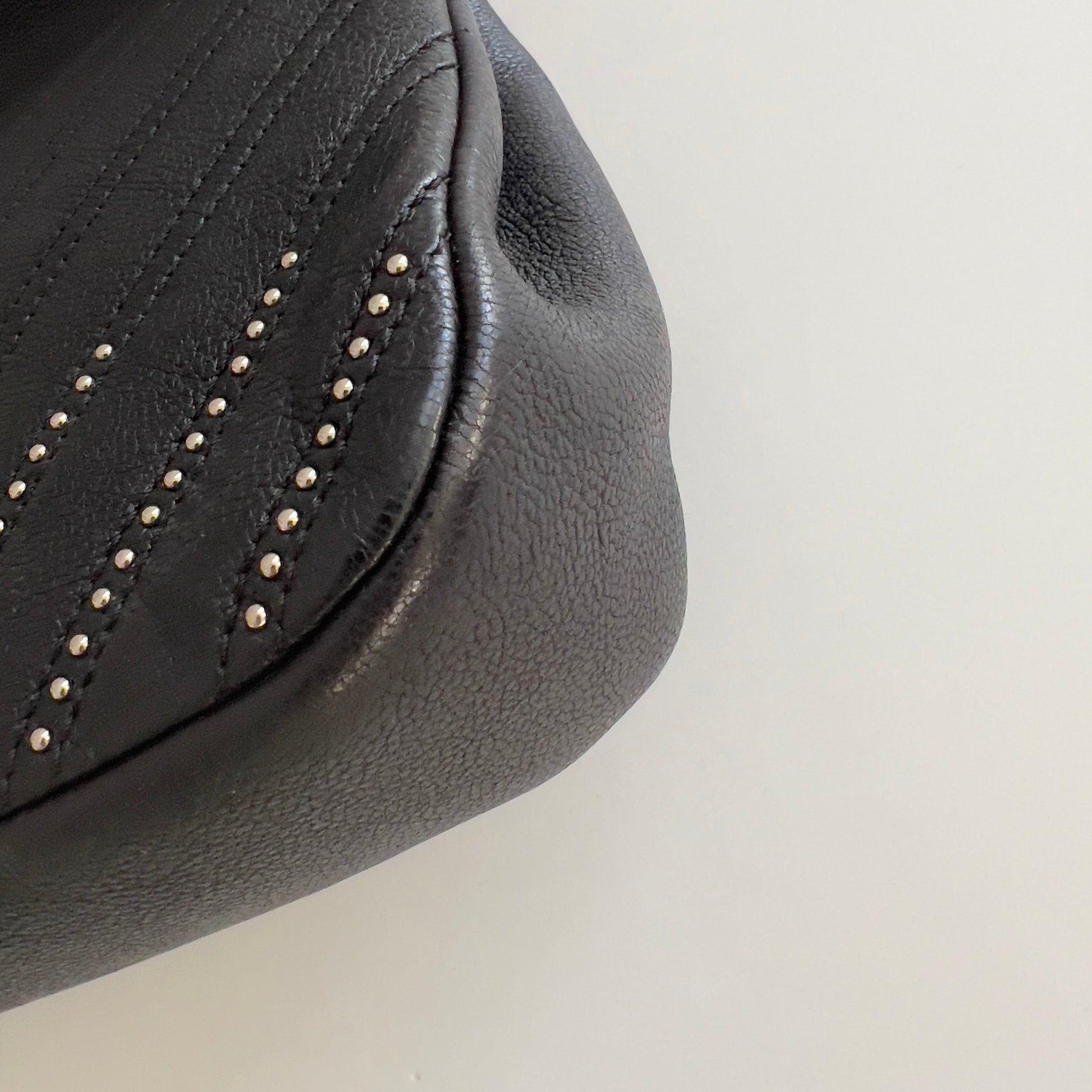 Chanel Calfskin Studded Chevron Medium Stud Wars Flap Black