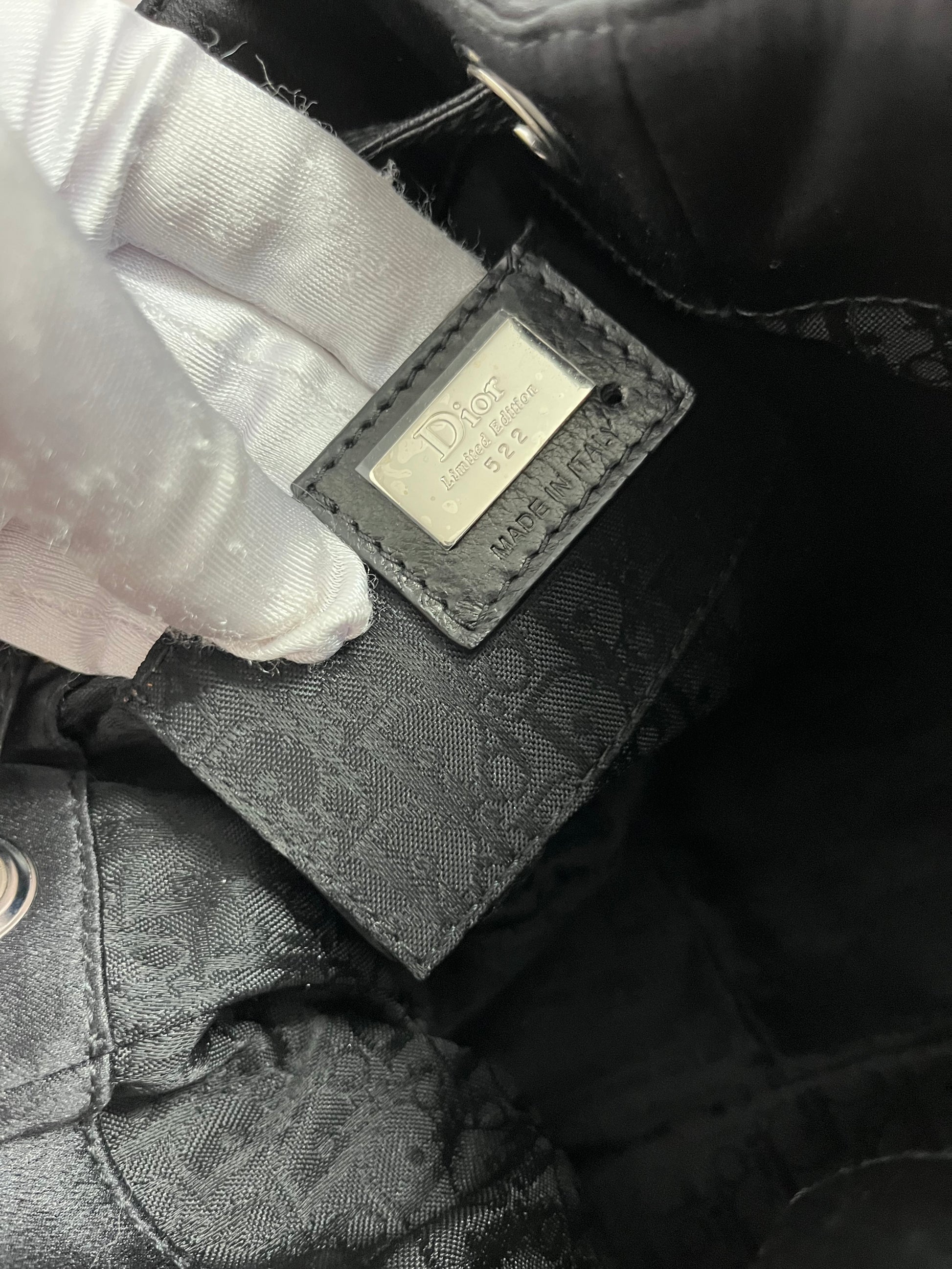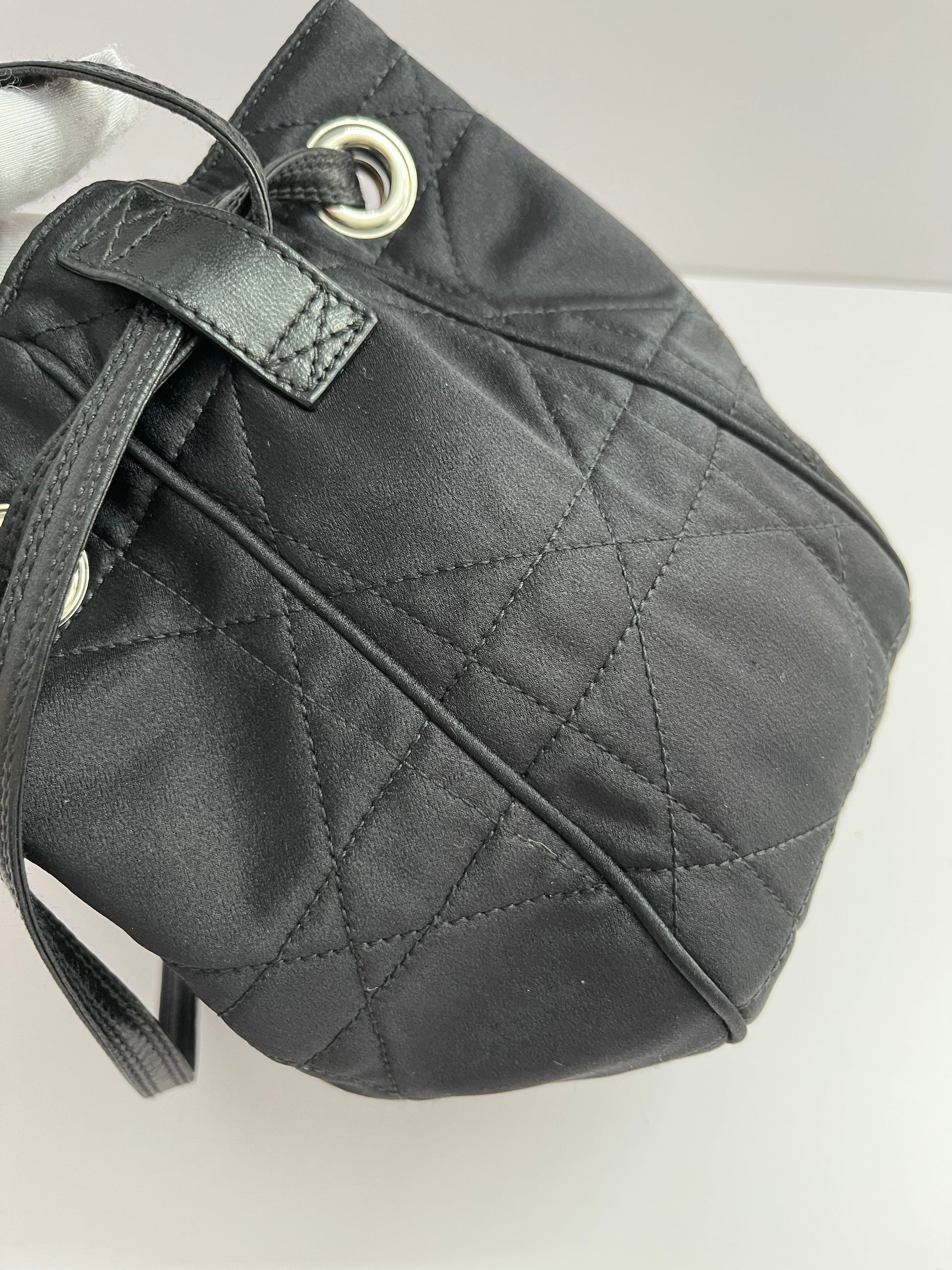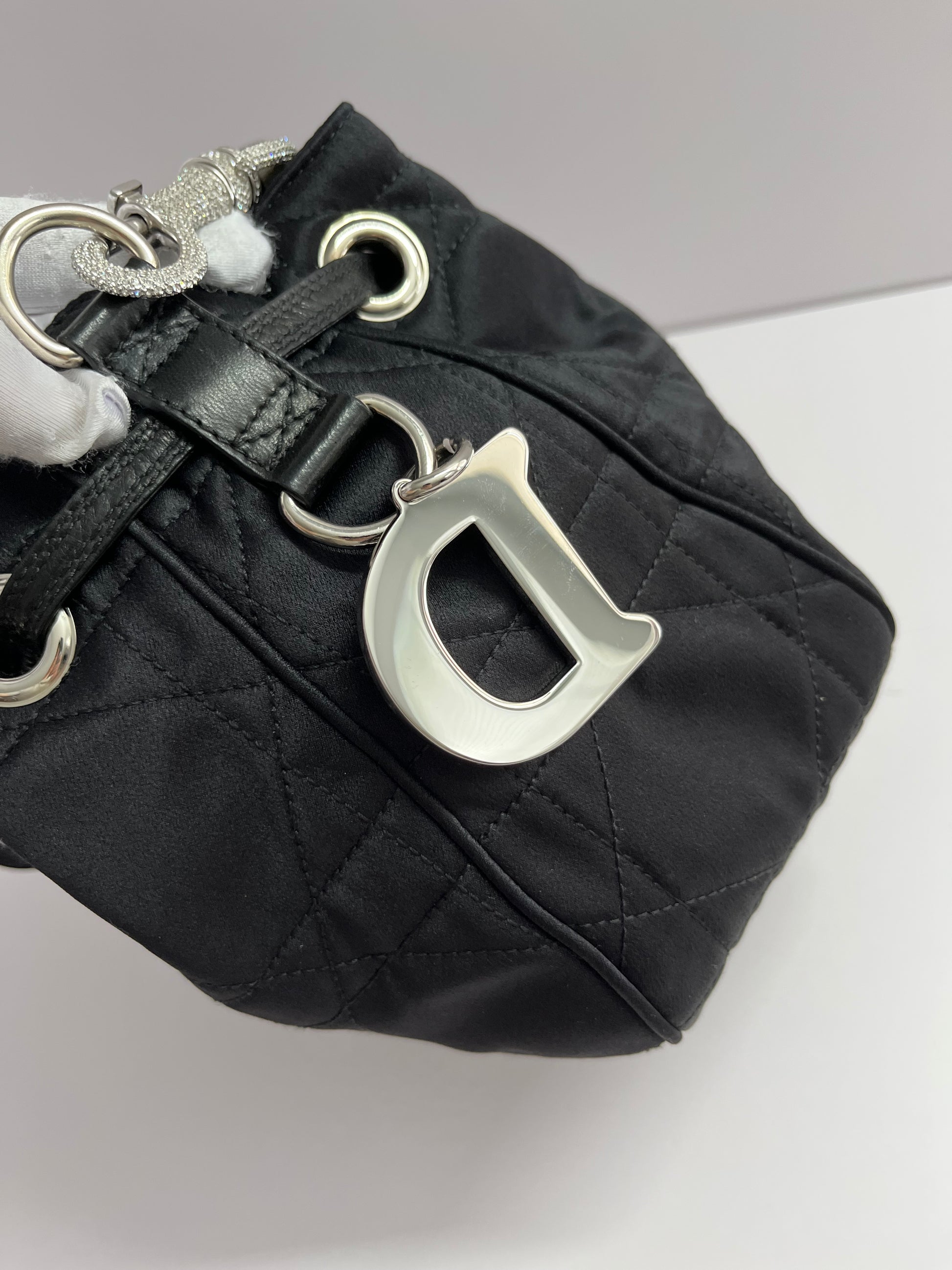 Dior black satin silver rhinestones hardware bucket shoulder bag