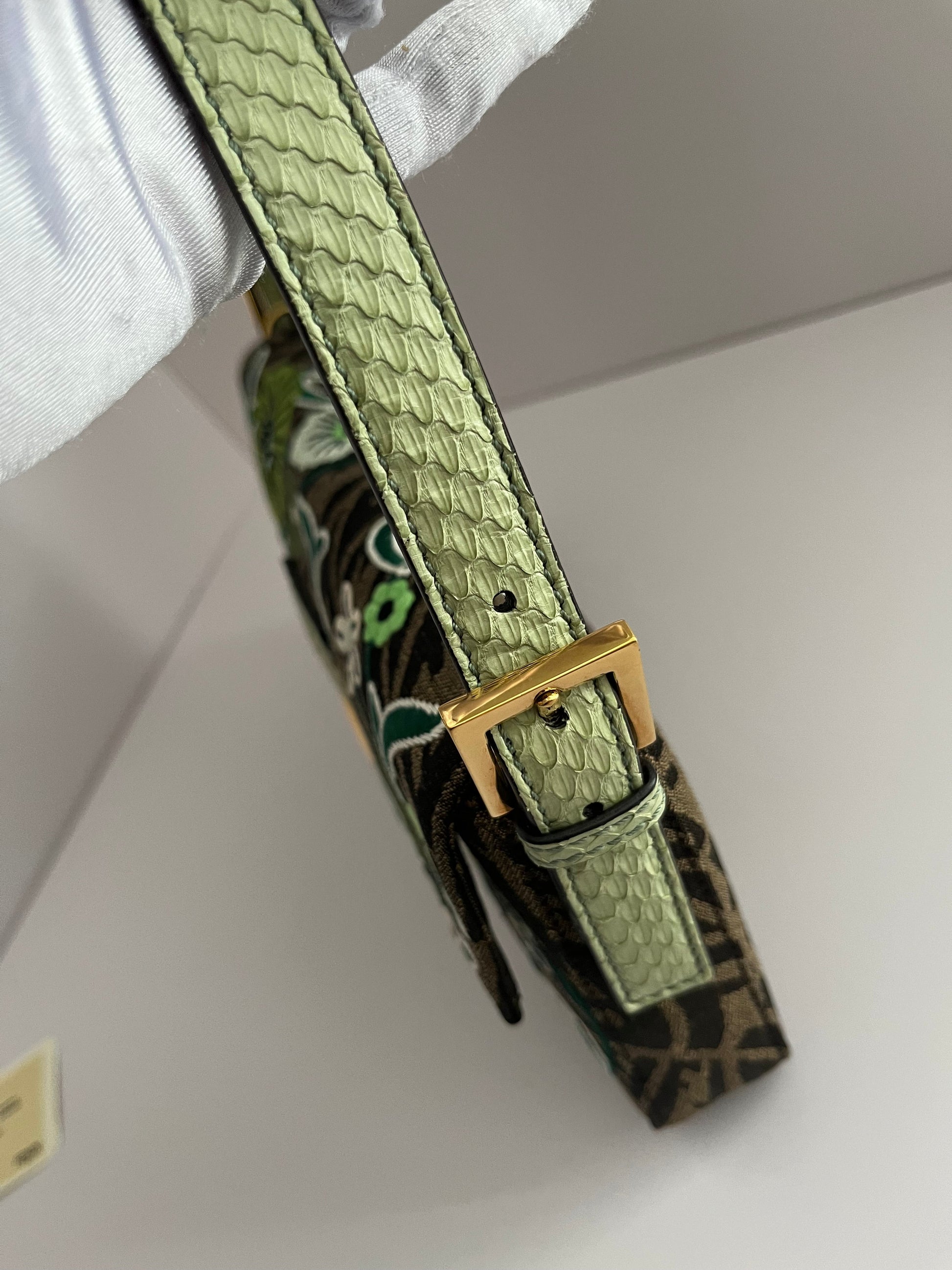 Fendi baguette FF embroidery gold hardware shoulder bag