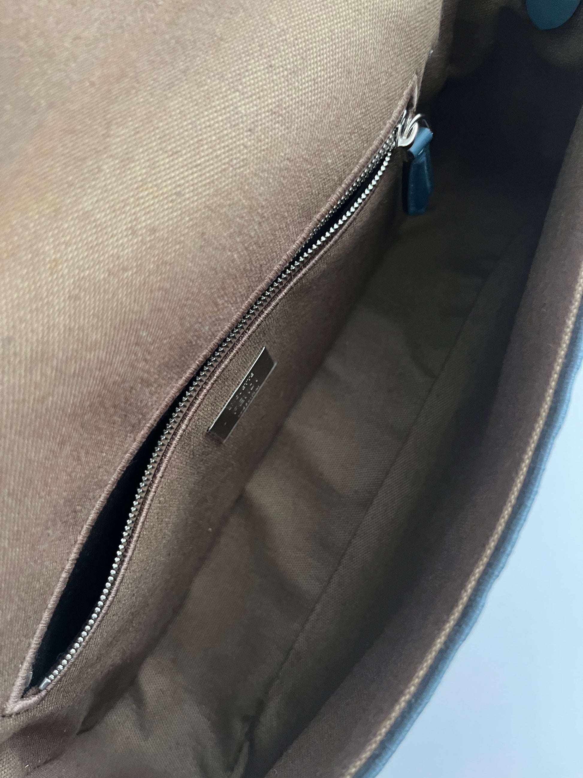 This Fendi Baguette shoulder bag showcases the brand’s hallmark FF velvet fabric paired with elegant silver hardware, combining timeless design with a fresh new style. Crafted for both sophistication and everyday wear, it offers a sleek silhouette perfect for elevating any outfit. The NWOT (New Without Tags) condition ensures pristine quality, making it a valuable addition for collectors or fashion connoisseurs seeking luxury with subtle statement detail.
