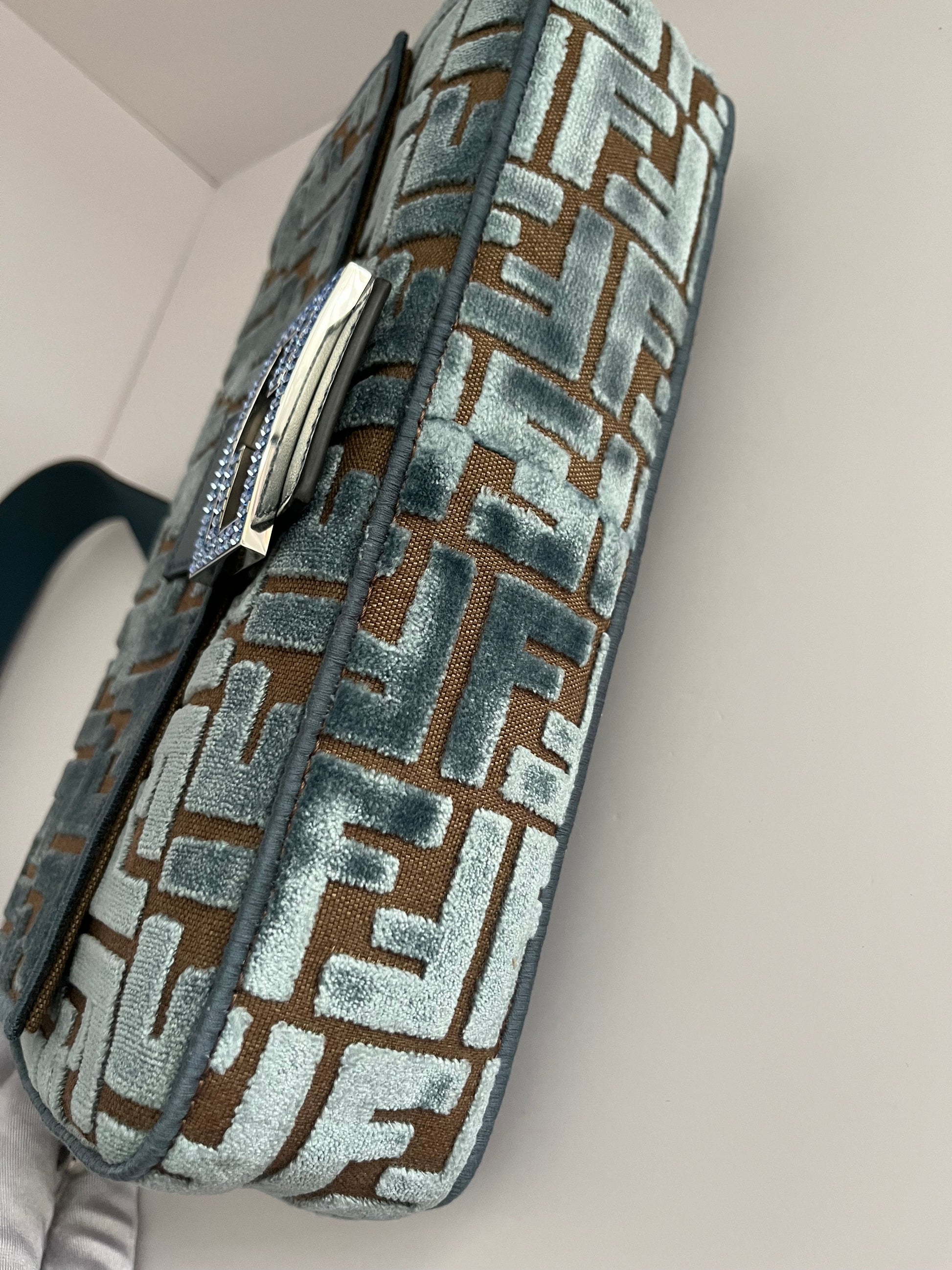 Fendi baguette new style FF velvet silver hardware shoulder bag NWOT
