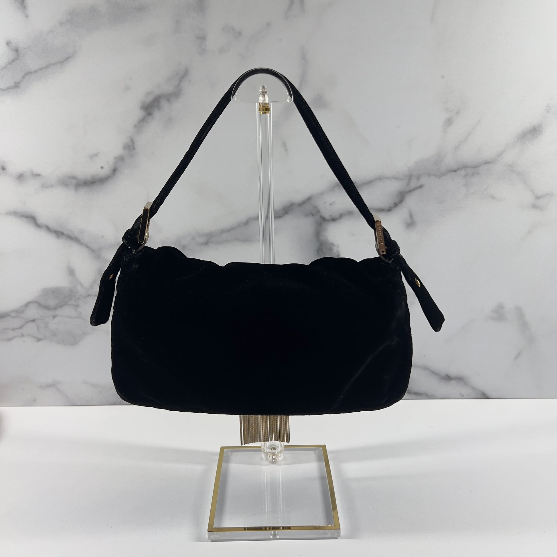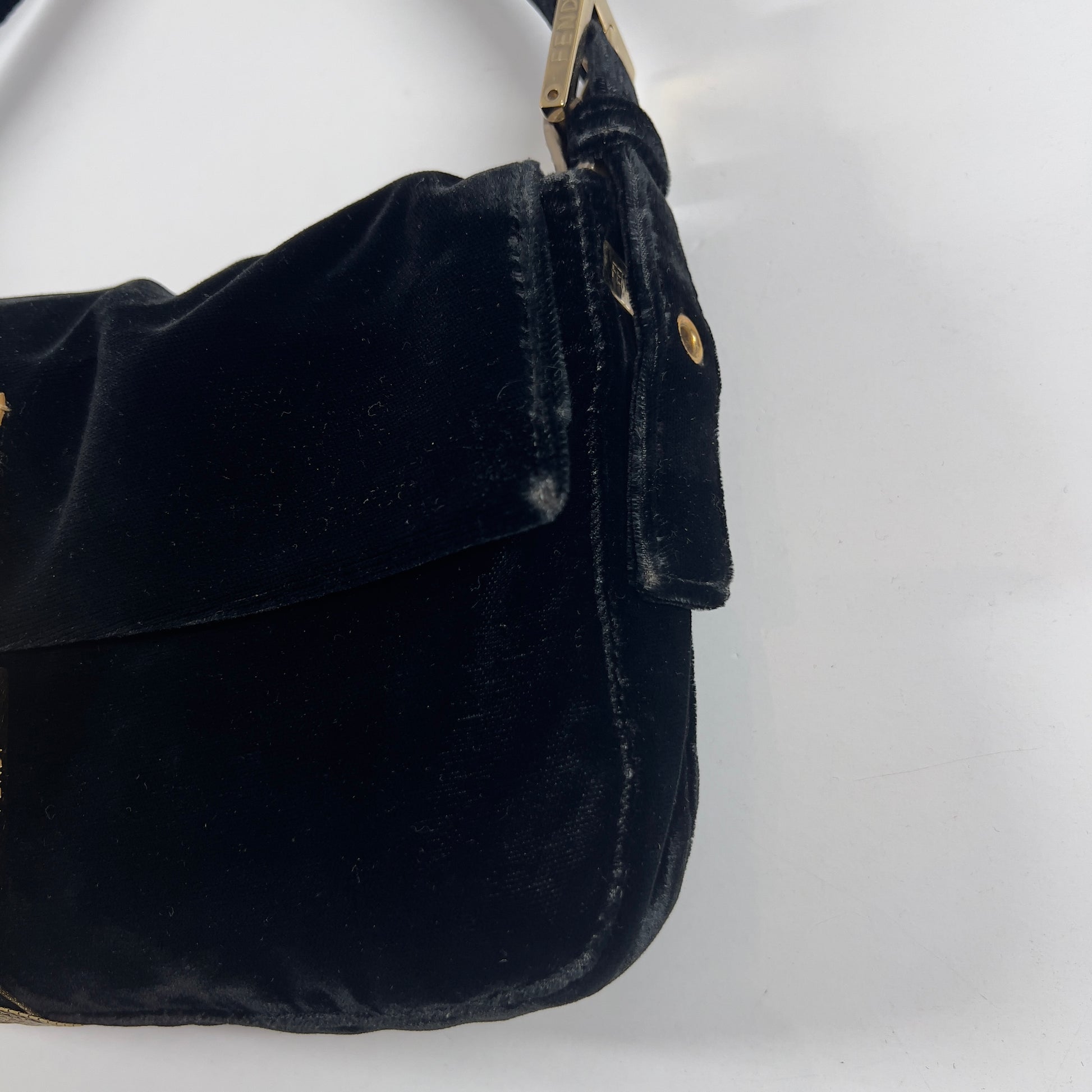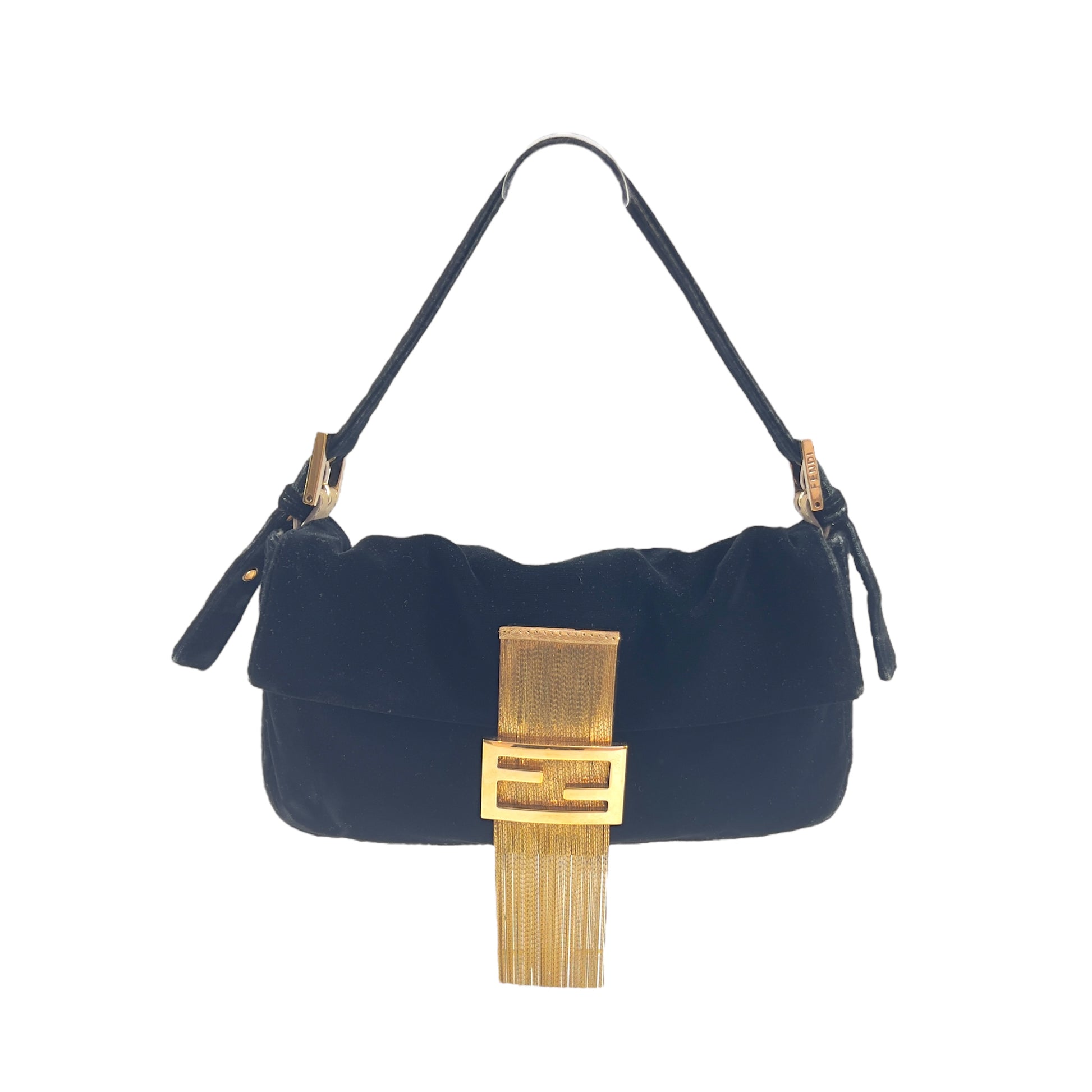Fendi Black Velvet Gold Tassel Baguette