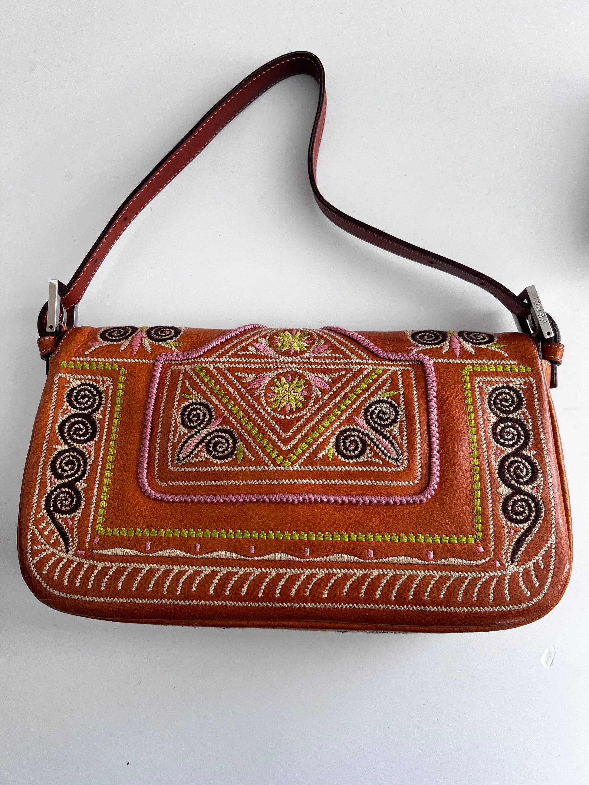 Fendi embroidered leather baguette