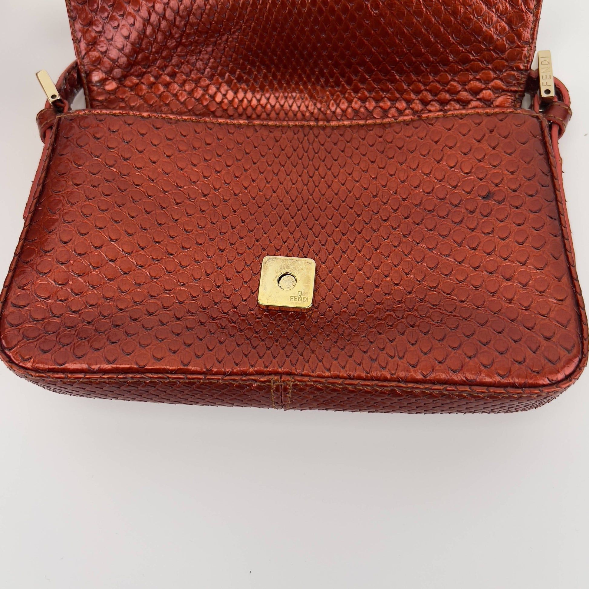 Fendi mini metallic orange baguette