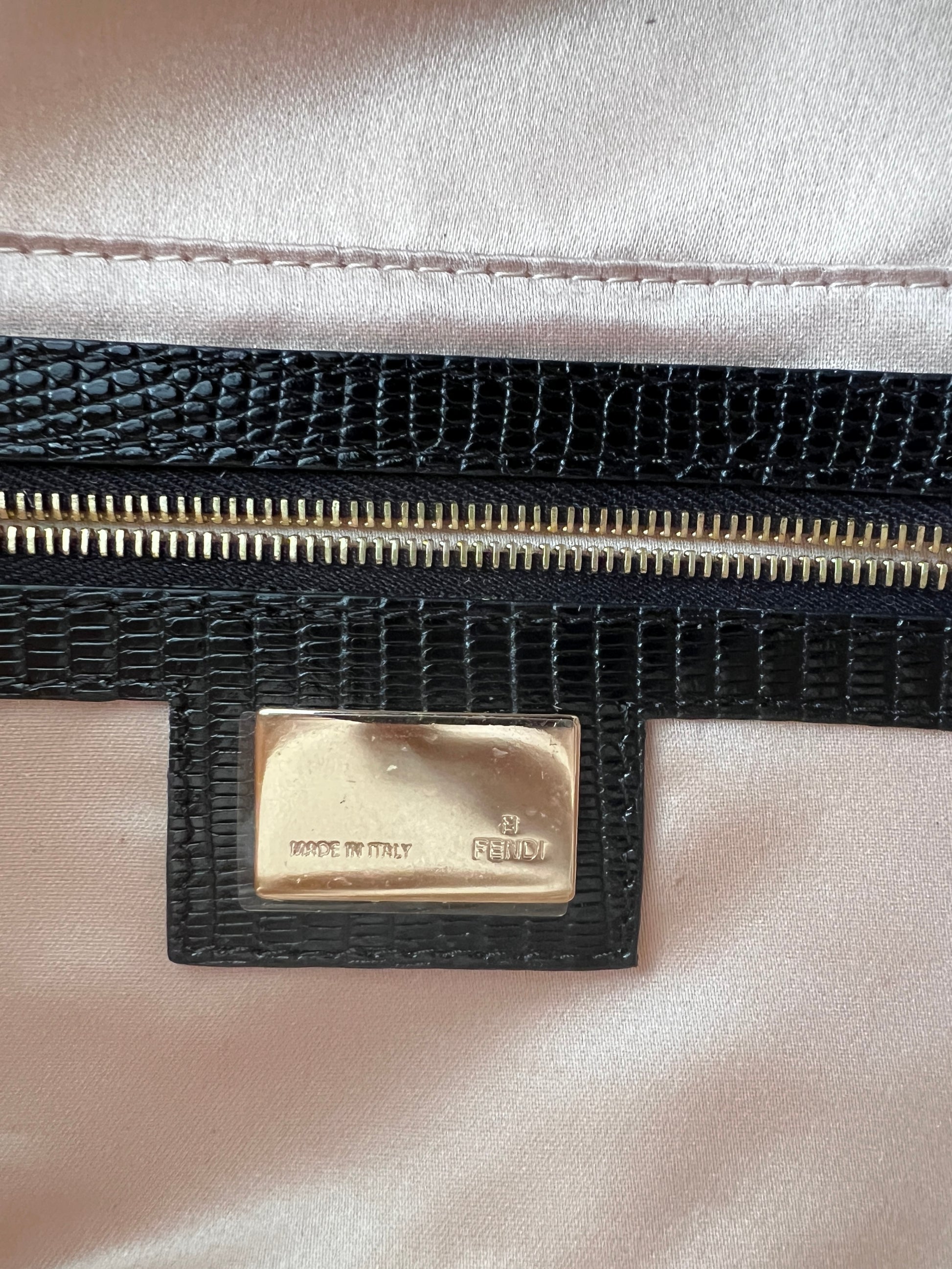 Fendi white & gold beaded lizard baguette