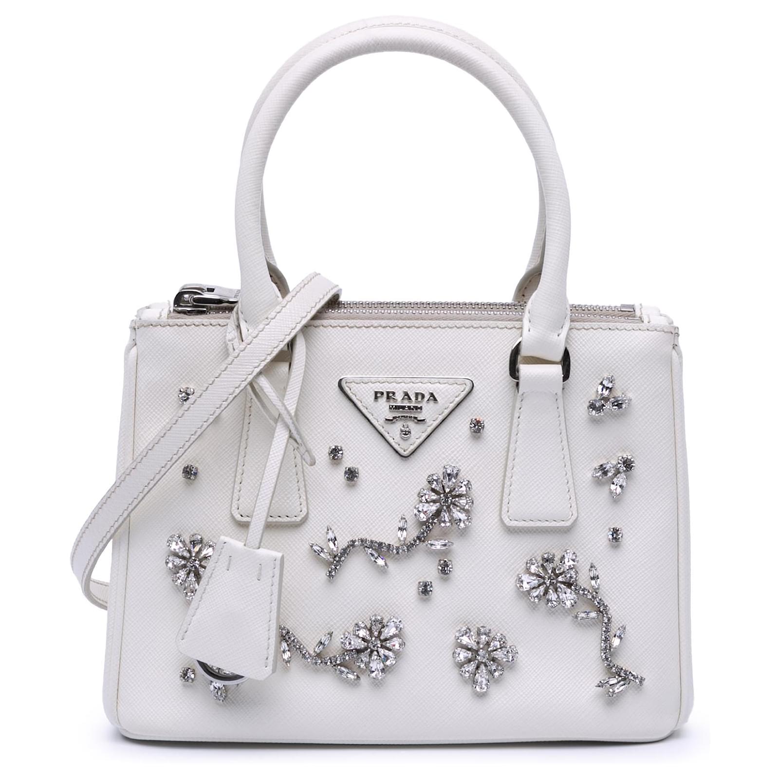 Prada Galleria White Mini Saffiano Lux Crystal Embellished Handbags