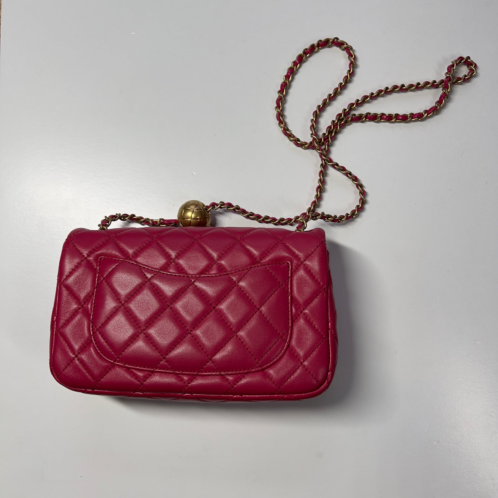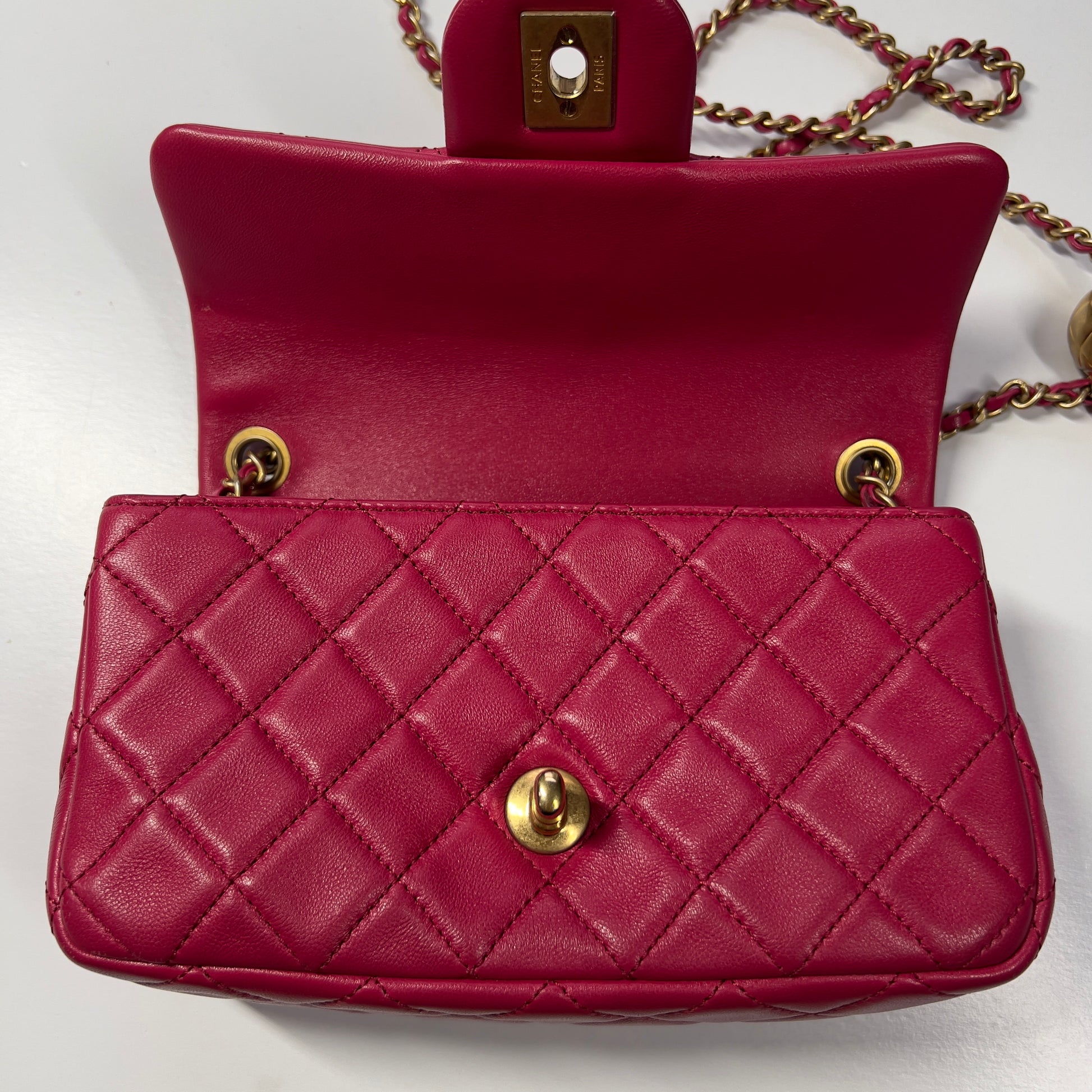 Chanel Dark Pink Lambskin Quilted Mini Rectangular Crush Flap Bag