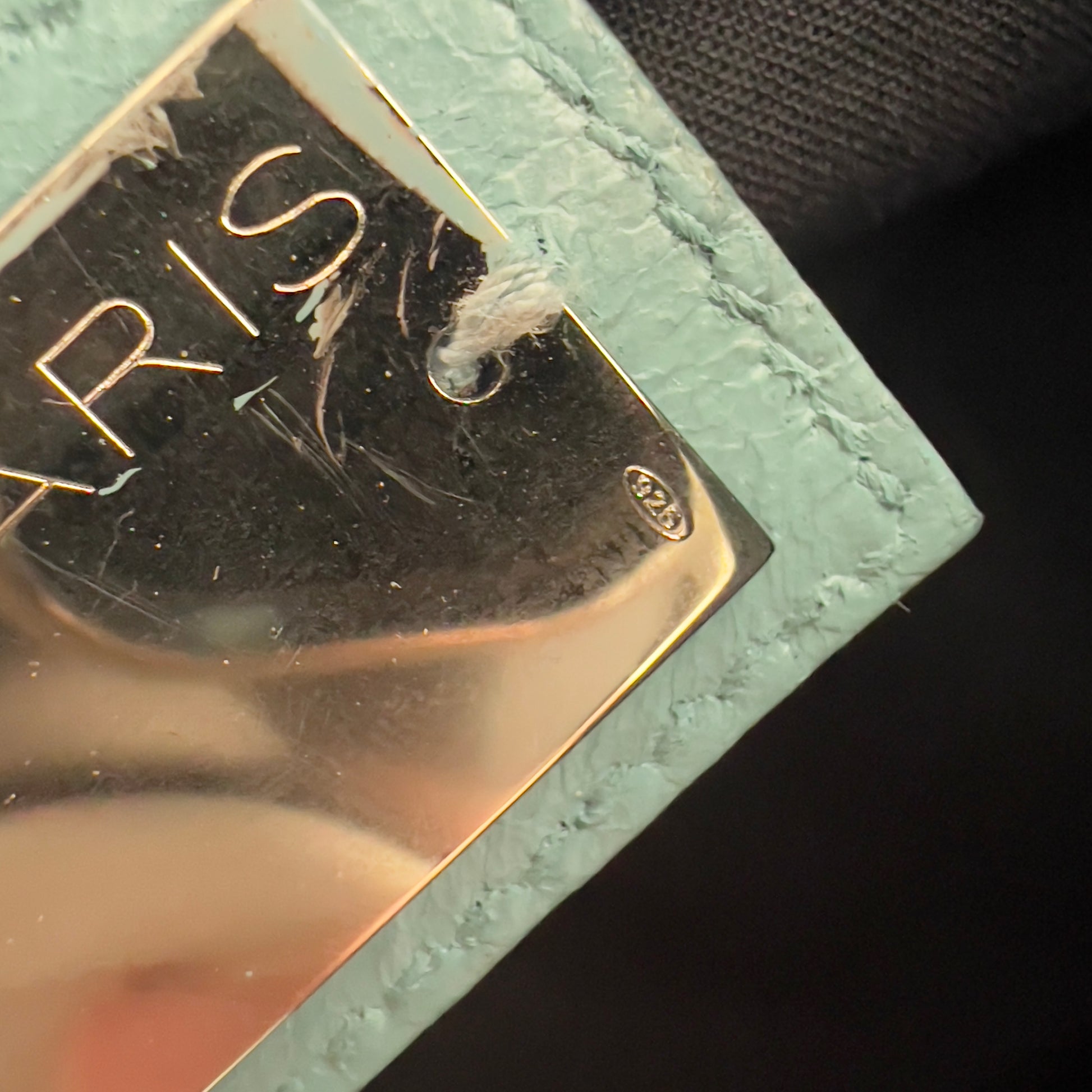 This piece has a “925” stamp on the metal label, which is very rare.