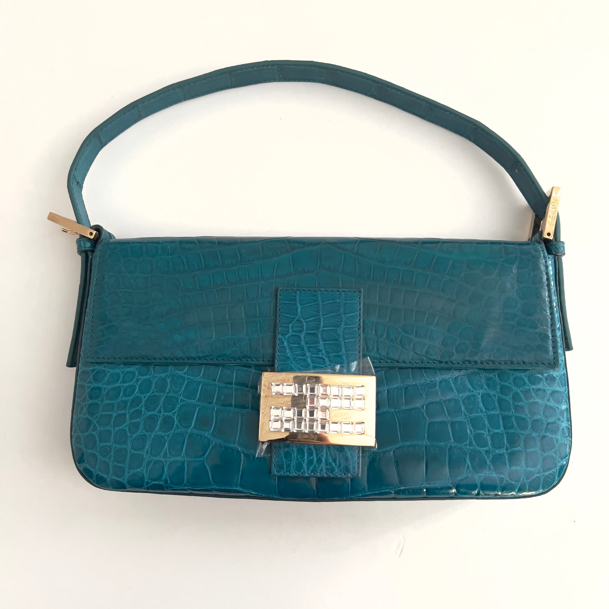 This bag looks even more stunning in person — the glossy turquoise crocodile leather paired with the crystal FF buckle is absolutely breathtaking. Fendi truly lives up to its roots in leather craftsmanship — the quality stand on par with Hermès.