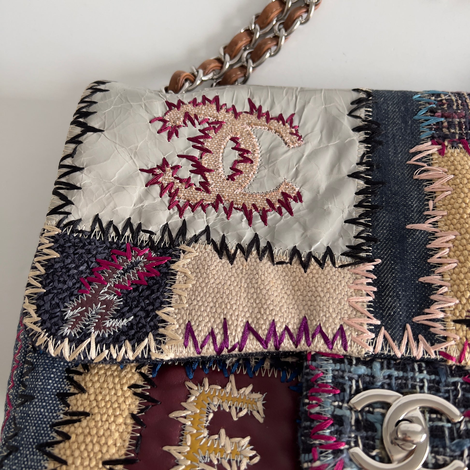 Vintage Chanel Patchwork Multicolor Jumbo Single Flap bag