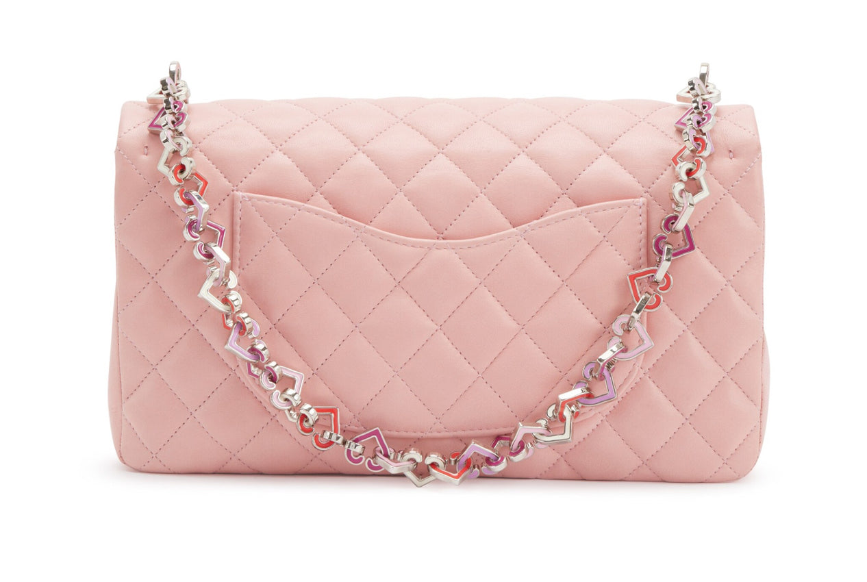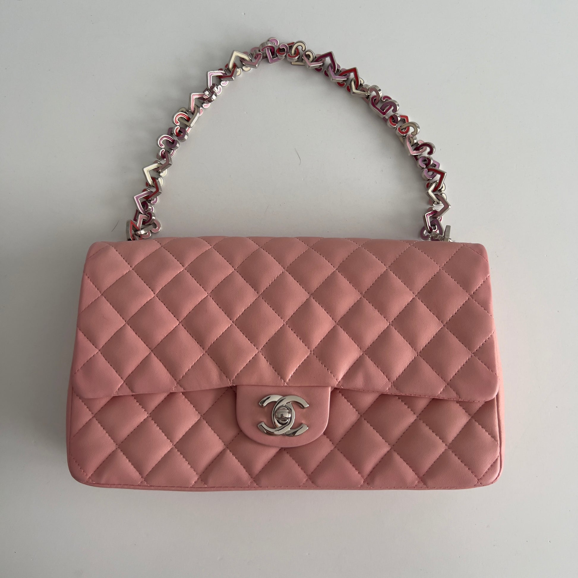 Chanel Pink Quilted Lambskin Medium Classic Heart Chain Valentine Flap Bag Enamel and Silver Hardware, 2004
