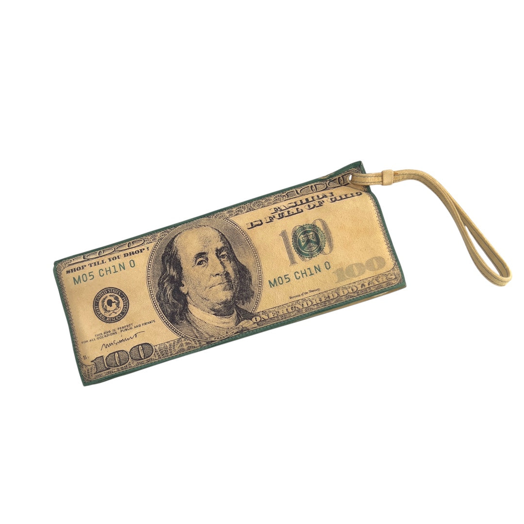 Add some vintage charm and Halloween fun to your wardrobe with the Vintage Moschino Hundred Dollar Wrist Bag. This quirky wrist bag from the playful Moschino brand is sure to make a statement with its cute and unique design.