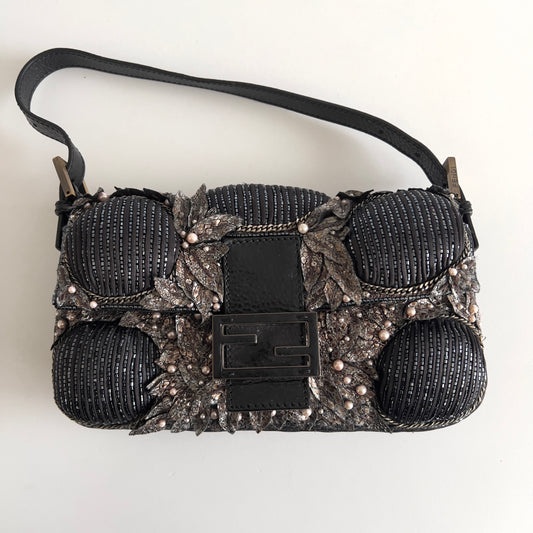 Vintage Fendi Deep Jungle Beaded Embroidery Baguette